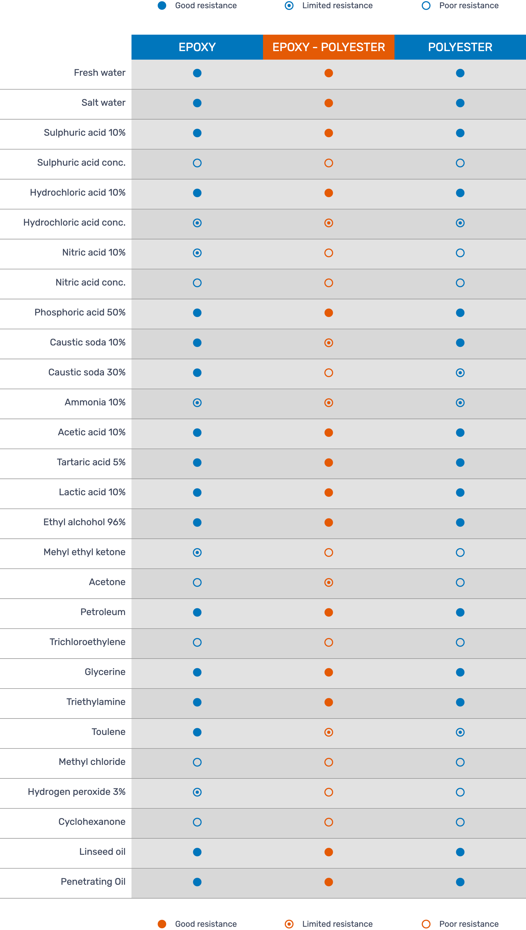 Resistance tests by immersion at 20°C. Data quoted is typical but may vary from product to product.